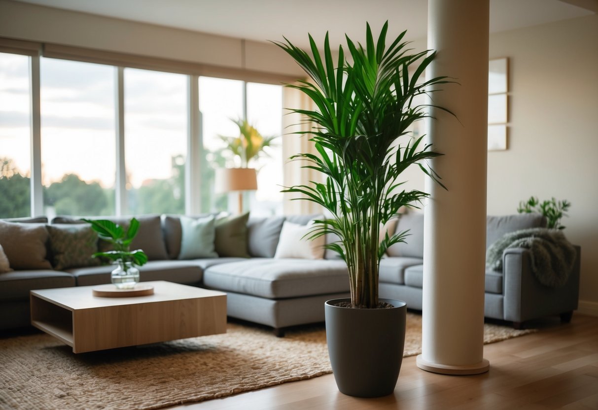 This approach adds life and color while covering up the pillar. It also improves air quality and creates a cozy atmosphere in your living room.